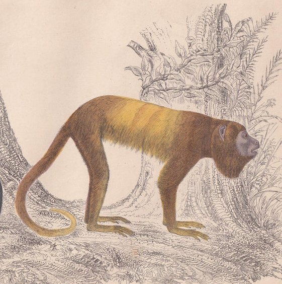 1850 HOWLER MONKEYS Print - Royal & Golden-Tailed - Original Hand-Coloured Engraving - Monkey Wall Art - Monkey Decor - 10 x 6.4 Inches