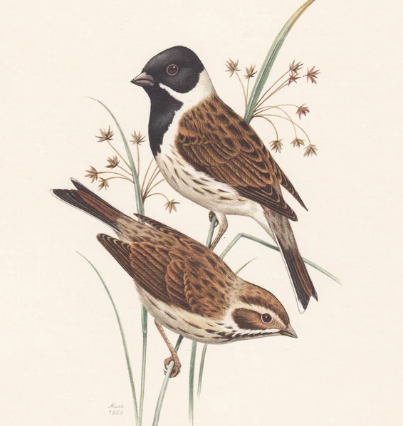 1960 COMMON REED BUNTING Bird Print - Vintage Bird Print - Bird Illustration - Bird Wall Art - Bird Decor - 7.5 x 10.6 Inches